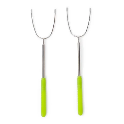 Light up your campfire nights with these glow-in-the-dark s’mores sticks from Bullseye’s Playground. Crafted from durable stainless steel, these roasting forks are perfect for toasting marshmallows to golden perfection. The green polypropylene handles not only provide a comfortable grip but also add a fun touch to your outdoor gatherings. With a length of 13.5 inches, they offer a safe distance from the fire, ensuring a delightful and safe s’mores experience.