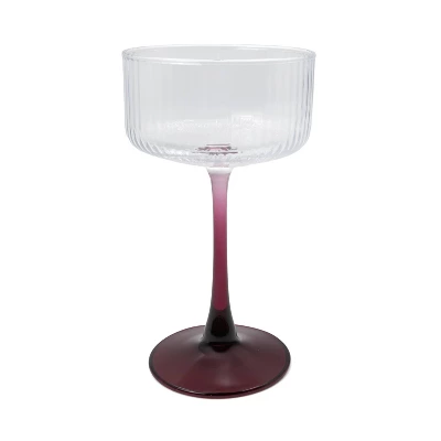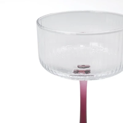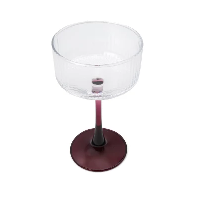 - 8.2 fl oz ribbed coupe glasses in maroon.