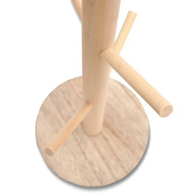 Organize your kitchen with the Mug Tree – Bullseye’s Playground™, crafted from natural wood. This freestanding rack is perfect for displaying your favorite mugs on the countertop, adding a touch of rustic charm to your space. With a height of 17.7 inches and a compact base, it fits neatly in any kitchen. Its lightweight design makes it easy to move, while the sturdy construction ensures your mugs are securely held.